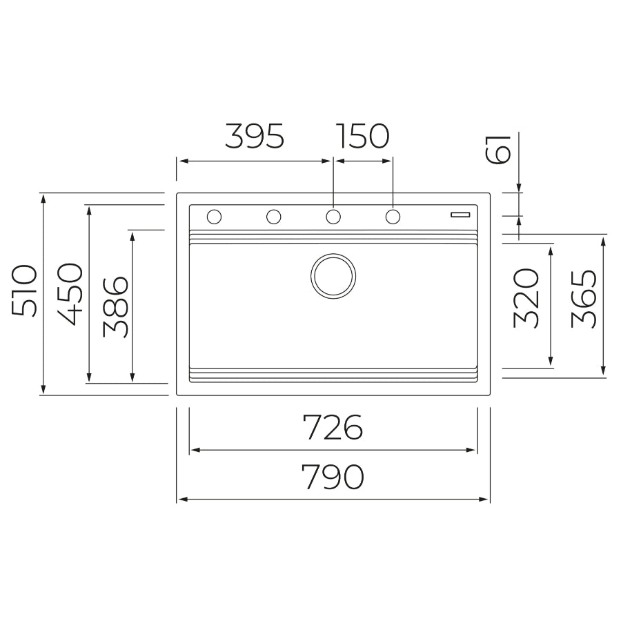 - Dimensiones del fregadero: 790 x 510 mm