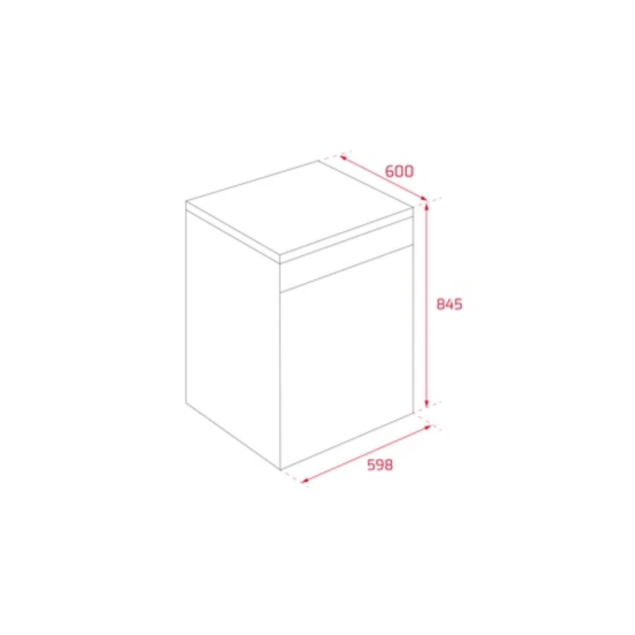 Dimensiones: 845 mm (alto) x 598 mm (ancho) x 600 mm (profundidad)