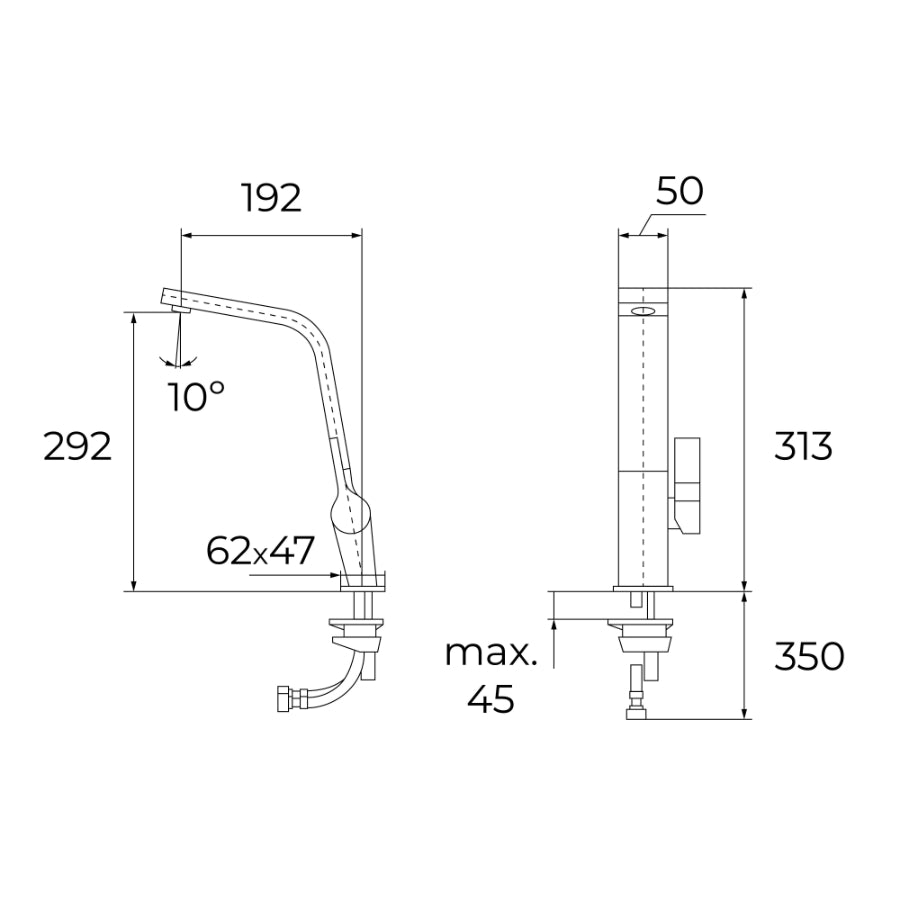 - Caño giratorio 360°, ideal para fregaderos de una o dos cubetas.